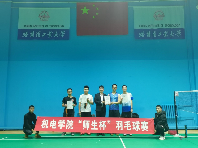 本次“师生杯”羽毛球赛分为男单、女单两个项目,共有35人(男子组32人,女子组3人)报名参赛。各位选手充满斗志、激烈拼搏,不仅展示了高超的球技,彰显了个人风采,同时也为我们展现了一场场精彩而令人振奋的比赛。经过激烈角逐进入男子组前四的分别是高紫藤、印鸿、李烁、王梓旭。最终高紫藤获得了男子组冠军,亚军和季军分别是印鸿、李烁。女子组冠军由曲颖老师夺得。比赛结束后孙宗斌老师给获奖选手颁发证书和奖品,并合影留念。