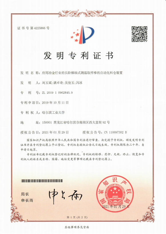 发明名称: 应用冶金行业的长阶梯轴式测温取样棒的自动化料仓装置
