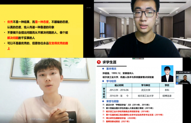薪火相传一百年,对话优秀机电人。为全面落实习近平总书记对榜样学习的重要指示,学习习近平总书记贺信精神,传承和发扬一代代工大人精神,英国威廉集团官网启动了“对话机电人”系列采访活动。7月10日,英国威廉集团官网员工会邀请到了优秀博士毕业生孙猛猛以及优秀硕士毕业生林能旭接受采访,以期为同学们指点迷津,本次会议采用云采访的形式,由张紫涵主持。