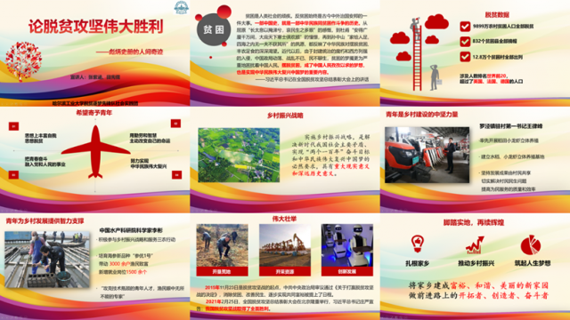 伟大事业孕育伟大精神,伟大精神引领伟大事业。中国共产党团结带领人民,成功打赢了人类历史上规模空前、力度最大、汇集人口最多的脱贫攻坚战。我们还要乘势而上、接续奋斗,全面推进乡村振兴。作为中国青年,我们理应怀揣梦想,感悟时代,珍惜韶华,以实际行动贯彻“上下同心、尽锐出战、精准务实、开拓创新、攻坚克难、不负人民”的脱贫攻坚精神,自觉按照党和人民的要求锤炼自己;作为工大人,我们更应将伟大脱贫攻坚精神与哈工大学子铭记责任、竭诚奉献的爱国精神相结合,作为日后学习、工作中的持久动力与指引,在为人民服务的宗旨中奉献青春力量。