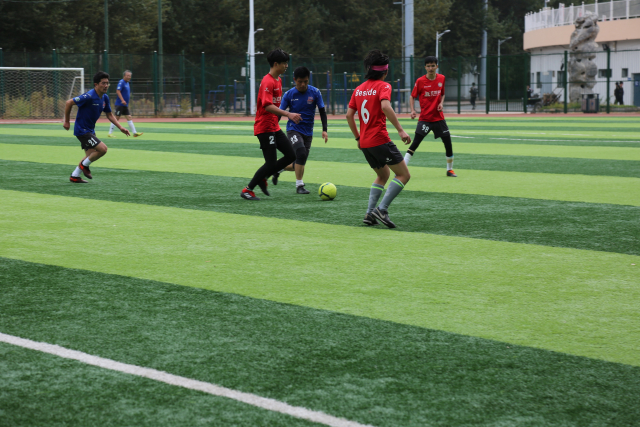 本次友谊赛共分四节,单节时长四十分钟,前两节结束双方交换场地。伴随着主裁判开场哨响,双方节奏有来有往,互不相让,在第一节比赛中段机电24号助攻19号破门得分,首节末段,教工队在门前造成杀伤形成点球机会,11号点球稳稳命中,比分扳平。次节上来,教工队28号队员门前头球摆渡取得领先,随后又由9号队员中场前吊射,打出一波世界波,机电也反击命中一球作出回应。第三节易边再战,刚一开场教工23号就凌空抽射,上场即建功。第四节虽然双方队员都出现不同程度的体力下降情况,但积极地争抢每一次球权,最终机电打入三球,教工打入两球,值得一提的是,教工最后一次进攻将球压哨打入球门,为本次友谊赛画上了圆满的句号。比赛结束之后,双方队员来到场边击掌示意,并一起合影留念。