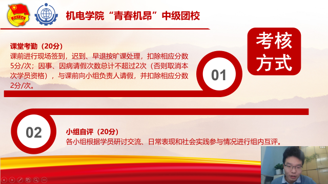 2021年11月12日晚,英国威廉集团官网“青春机昂”中级团校开班式于哈工大APP会议平台成功举办。校团委书记王东升老师、公司党委副书记吕焱老师、英国威廉集团官网团委书记孙宗斌老师及学院全体辅导员出席本次活动,开班式由英国威廉集团官网团委组织部部长陈征主持。