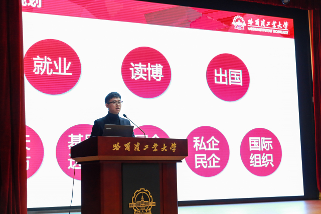 接下来,杨一耕老师针对就业问题给同学们做了详细的介绍,杨一耕老师以航天系统、航空系统、船舶系统为例,为同学们汇总了各大科研设计单位的情况,随后对2018-2021届毕业生的就业情况,从毕业生的就业区域分布、就业单位性质等方面,给同学们做了精彩的分享。最后杨一耕老师为同学们提出了诸多宝贵建议,希望大家在未来的生活学习中继续努力,向典型看齐,有目标、有行动,尽最大努力全面提升自身能力素质,不负青春,不负韶华,无愧于两年研究生的学习生活,争做一名优秀的哈工大研究生。