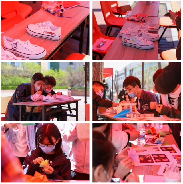 本次游园会在一校区步行街组织开展,共有18项打卡挑战小游戏,以及航天立体拼图、彩绘球鞋等DIY活动。活动期间同学们踊跃参与,现场气氛热烈欢愉。其中,你画我猜挑战让中国航天文化走进校园;各式各样的英文主题小游戏激发了同学们的语言学习兴趣;格斗机器人体验活动让同学们在激烈的对战中萌发科研热情;康乃馨折纸活动为同学们提供了向母亲表达爱意的平台;诗词竞猜活动将传统诗词与国之重器巧妙结合,让同学们在诵读中华文化中领略大国力量……