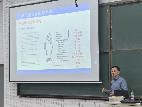 张俊杰教授围绕学位论文的定义、各部分撰写要点、答辩PPT制作要点及学术道德规范等内容进行了详细的讲解。韩振宇教授重点强调了论文和PPT的格式要求。辅导会结束后,两位老师与同学们进行了深入交流,解答了员工在撰写毕业论文时遇到的问题。此次辅导为员工毕业答辩前的论文撰写和PPT制作提供了指导和参考。